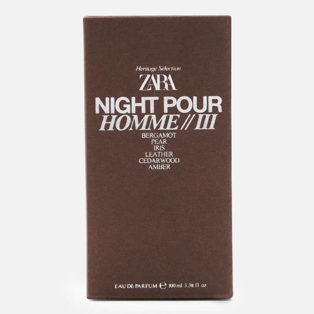 Night Pour Homme III est une fragrance boisée, épicée et élégante, avec un caractère à la fois frais et profond. L’ouverture démarre avec une touche épicée de poivre et des notes fruitées comme la bergamote et la poire, apportant une fraîcheur moderne. Le cœur révèle un accord floral sophistiqué dominé par l’iris et l’osmanthus, qui donne une sensation douce et légèrement poudrée.