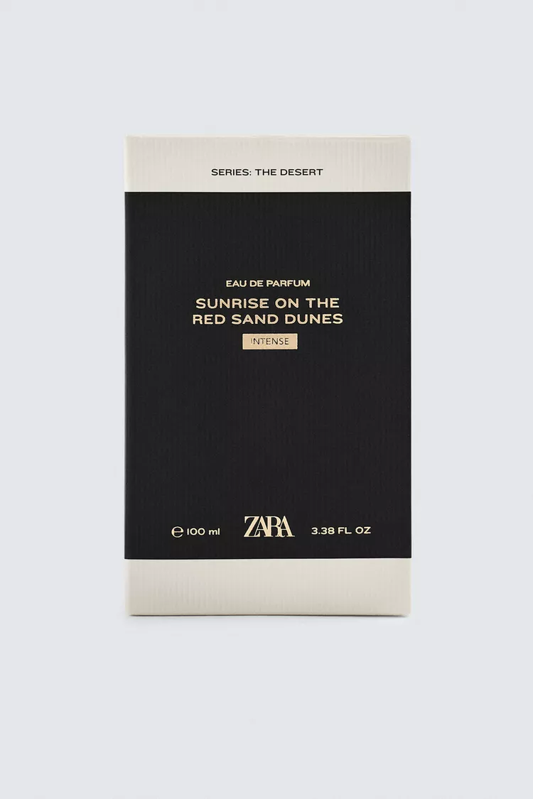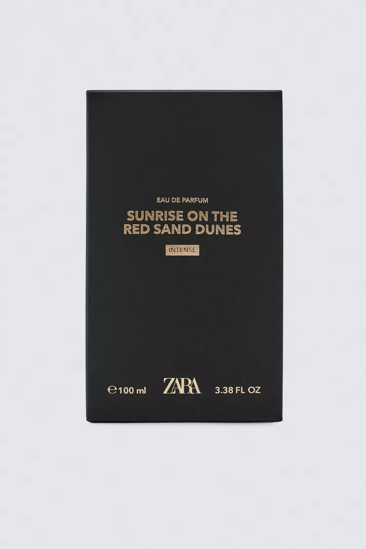 Sunrise on the Red Sand Dunes Intense est une fragrance boisée orientale lumineuse et chaleureuse, inspirée par la transition entre le jour et la nuit dans le désert.